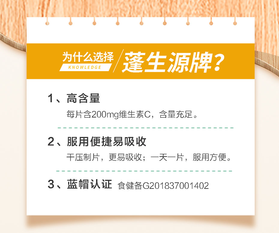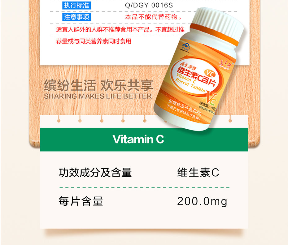 【功效成分及含量】每片含:維生素C 200.0mg
