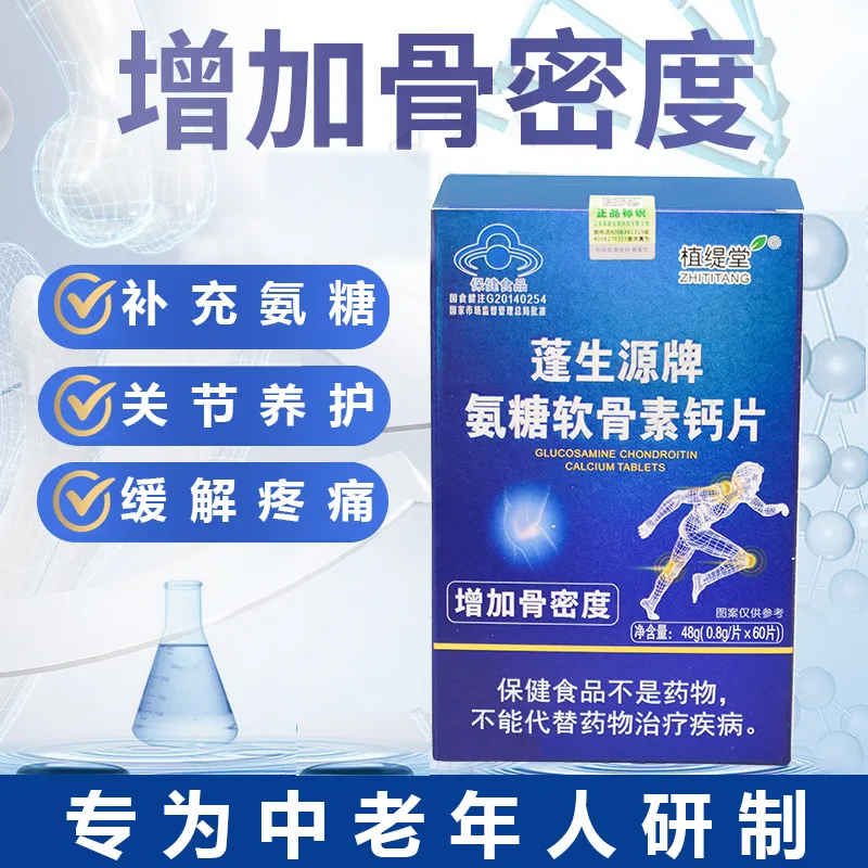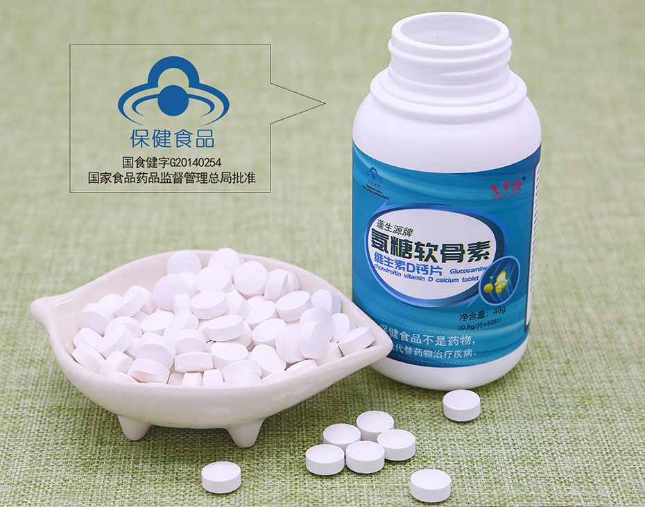 主要原料:碳酸鈣、D-氨基葡萄糖鹽酸鹽、硫酸軟骨素、維生素D3、微晶纖維素、聚維酮K30、硬脂酸鎂